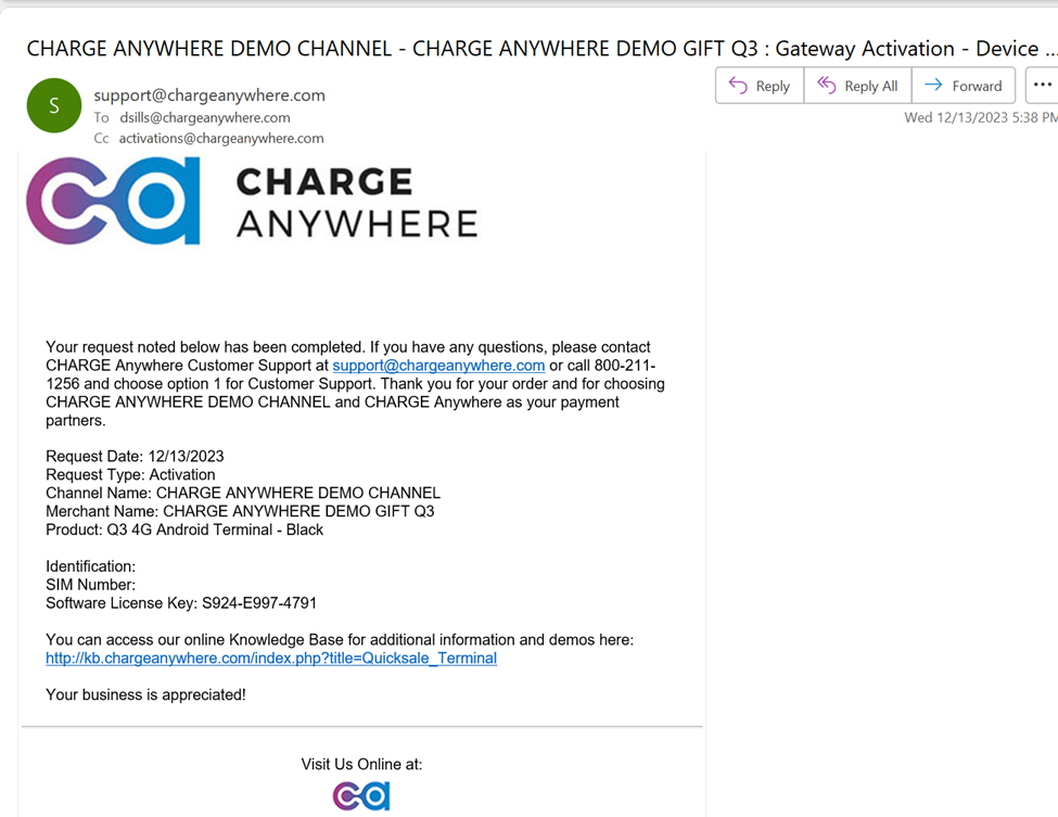 This website and content contains confidential, trade secret information, which is proprietary to Charge Anywhere, LLC, and its subsidiaries (collectively “Charge Anywhere®”) and is provided solely for the recipient's use in connection with the recipient’s participation in one of the Charge Anywhere’s Payment Gateway Programs. Charge Anywhere reserves the right to make changes to the specifications at any time and without notice. The information furnished by Charge Anywhere in this publication is believed to be accurate and reliable as of the date of its release; however, no responsibility is assumed by Charge Anywhere for its use, nor for infringements of patents or other rights of third parties resulting from its use, nor for the violation, misinterpretation, or misapplication of any laws, or any regulation of any credit card association including Visa USA, Visa International, or MasterCard International. No general license is granted under any patents, copyrights, or other intellectual property rights owned by Charge Anywhere and the recipient is only granted an end user license to use this information for the purpose of participating in one of Charge Anywhere’s Payment Gateway Programs, pursuant to an agreement with Charge Anywhere or one of its authorized Program partners. All modifications or improvements to any of the information and specifications in this document shall belong exclusively to Charge Anywhere, LLC. No unauthorized copying, disclosure, or use of this document is permitted without the express written consent of the Charge Anywhere, LLC.