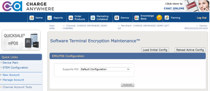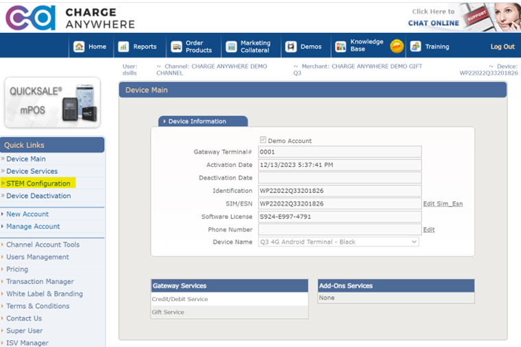 3.11 One last step is required to ensure that gift appears as a tender on the terminal device, and that is to update STEM. Here’s how to do that. From the Merchant Main screen, for each activated device, click on Details.