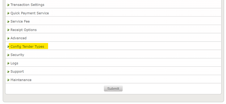 4.9 Scroll to the very bottom and click on Config Tender Types.