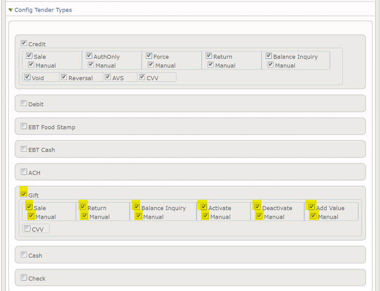 Gift cards are treated just like credit or debit cards and can process the same types of transactions such as Sale, Refund Authorize, Capture, Reversal/Void, Balance Inquiry.