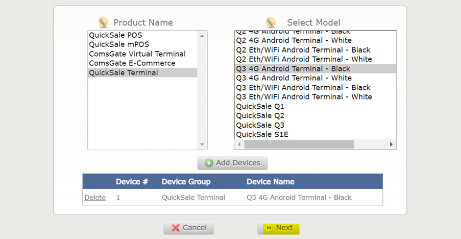 3.7 Click on the appropriate Model, then click on Add Devices.