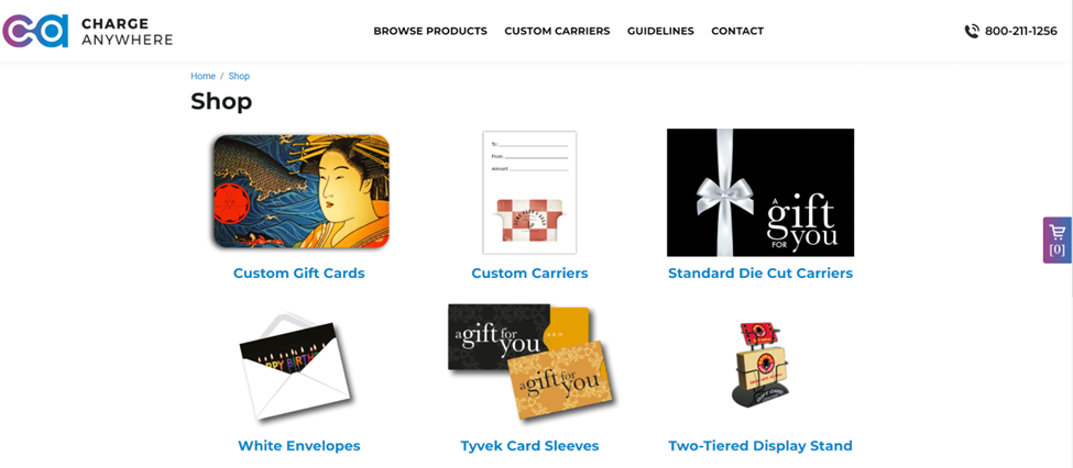 Your merchant will visit https://www.chargeanywheregc.com/ to browse products, add them to the shopping cart, and complete their order.