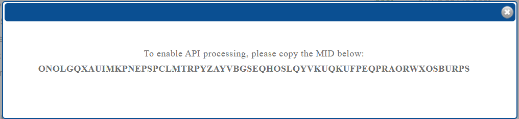 Clicking View MID reveals the encrypted Merchant ID string required for API-based payment processing.