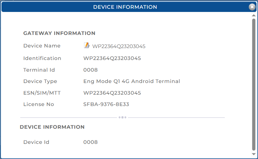 Clicking on any GTW TID opens the Device Information popup, showing:
