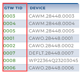 Clicking GTW TIDs opens the same Device Information popup as seen under Credit Card