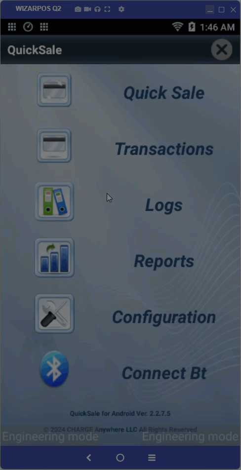 - Open the Charge Anywhere QuickSale 1.0 app on your device.