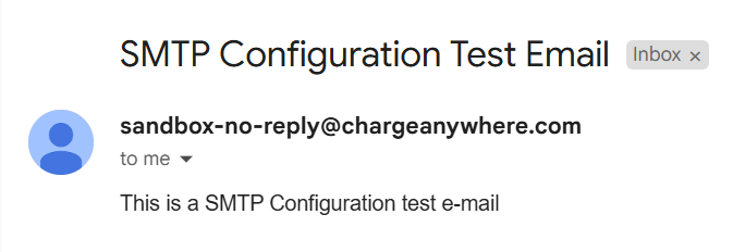 Custom FromThe email address that will appear in the “From” field of outgoing emails (e.g., sandbox-no-reply@chargeanywhere.com).