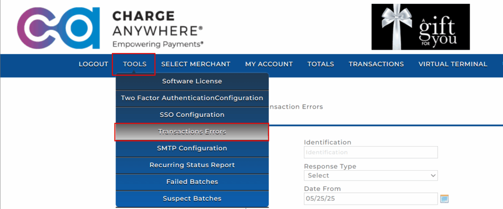The Transaction Errors tool allows partners to monitor and troubleshoot failed transaction attempts across associated merchants. This function provides visibility into error messages, response codes, and failed transaction attributes to assist in resolution and support.